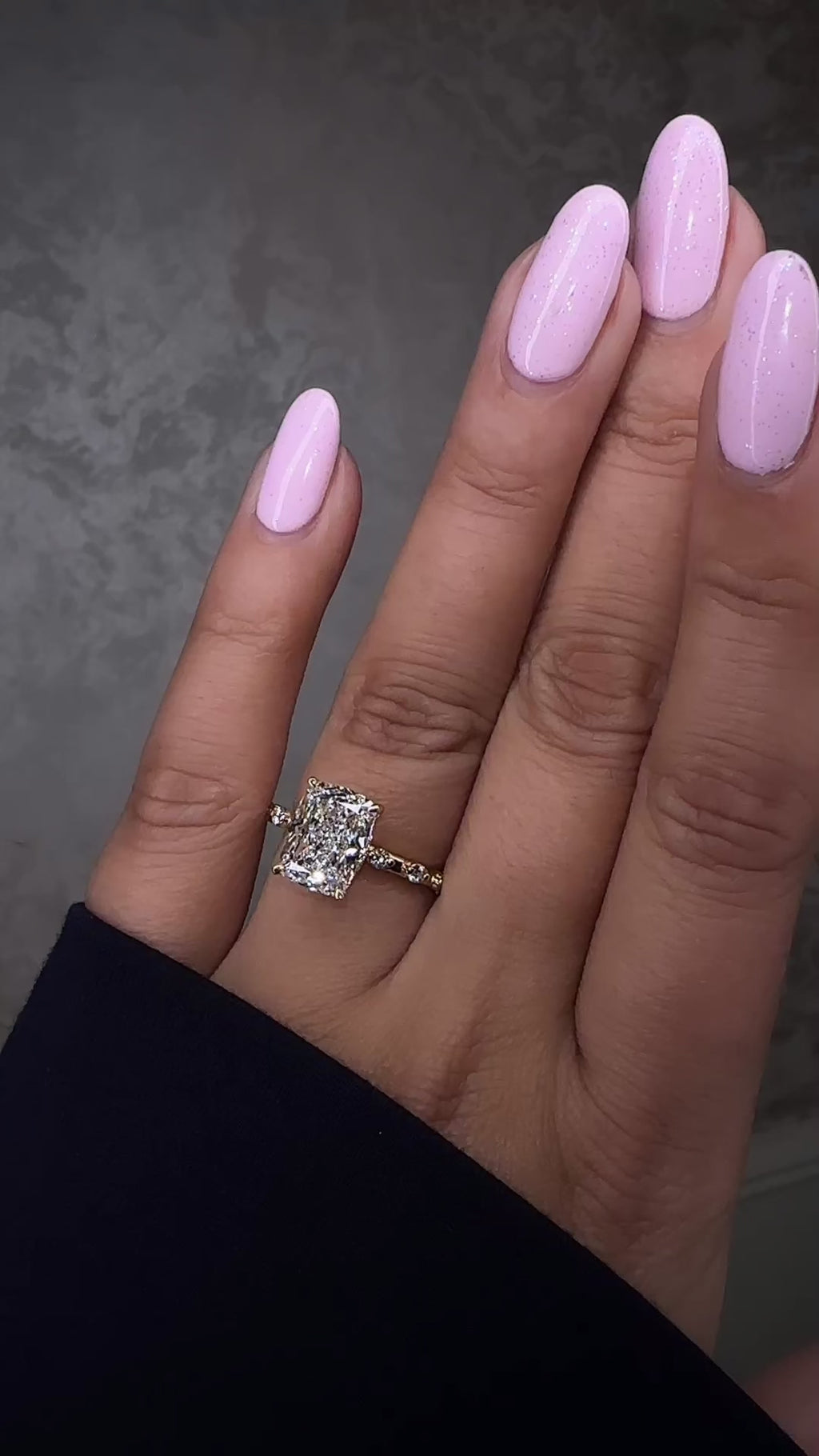 Crafted for those who adore understated luxury with maximum sparkle, this design centres around a breathtaking 4ct elongated cushion cut lab grown diamond. The elegant, stretched silhouette of the cushion cut creates a soft yet striking presence on the hand, enhanced by a delicate diamond hidden halo that shimmers from beneath the stone. Paired with a spaced diamond band for a modern, airy aesthetic, this piece is the perfect blend of timeless romance and contemporary sophistication.