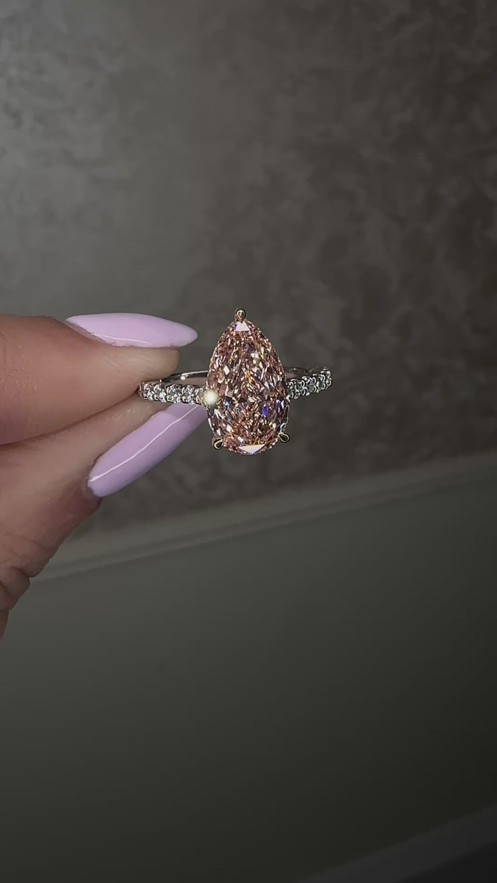 A striking expression of modern romance, this exquisite engagement ring showcases a captivating 3ct pear cut lab grown pink diamond, designed to command attention while retaining an unmistakably soft, feminine elegance. Set in a refined U prong cathedral setting, the centre stone appears beautifully elevated, allowing light to flow effortlessly through the diamond for exceptional brilliance.